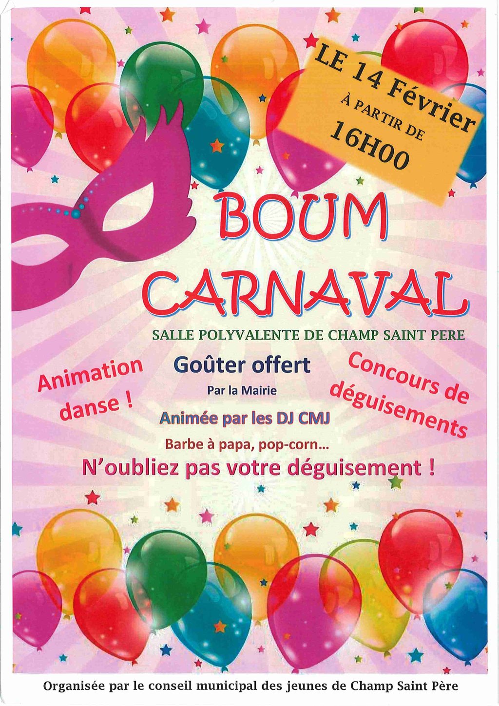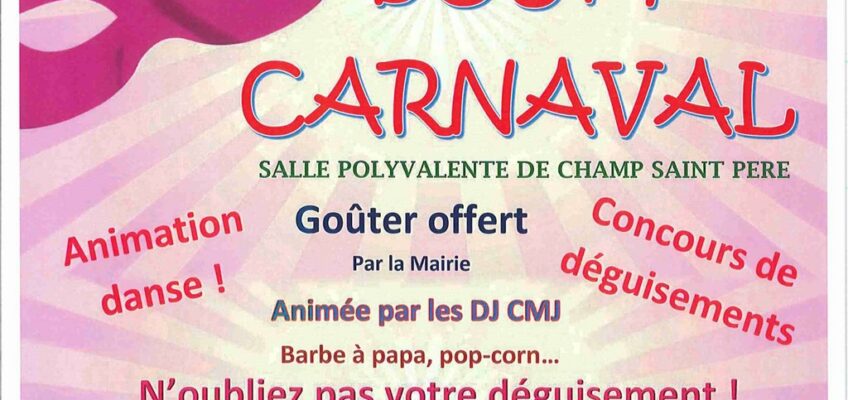 Le 14 février 2026 à partir de 16h00 à la salle polyvalente de Champ-Saint-Père Boum Carnaval
