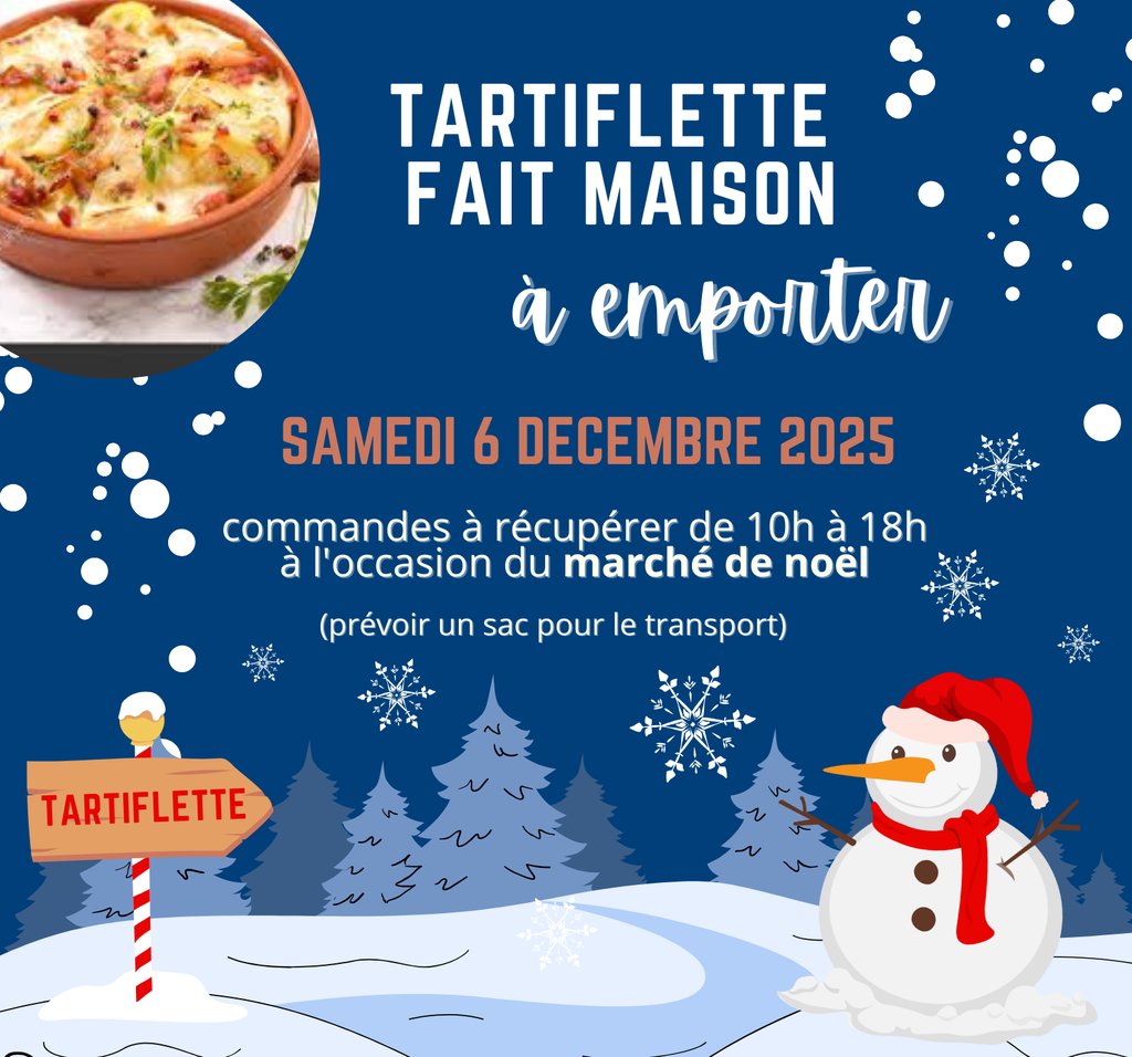 Commandez dès aujourd’hui votre votre part de tartiflette maison à récupérer lors du marché de noël de 10h à 18h.