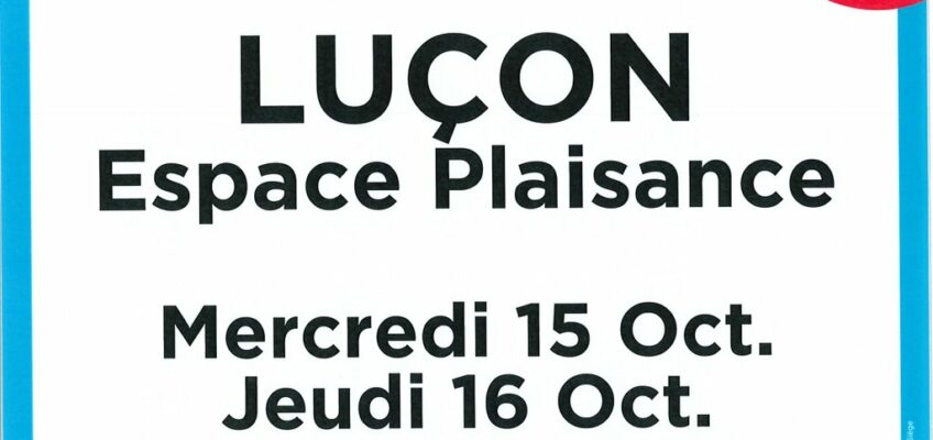 Espace Plaisance à Luçon le mercredi 15 et jeudi 16 octobre 2025 de 15h30 à 19h30.