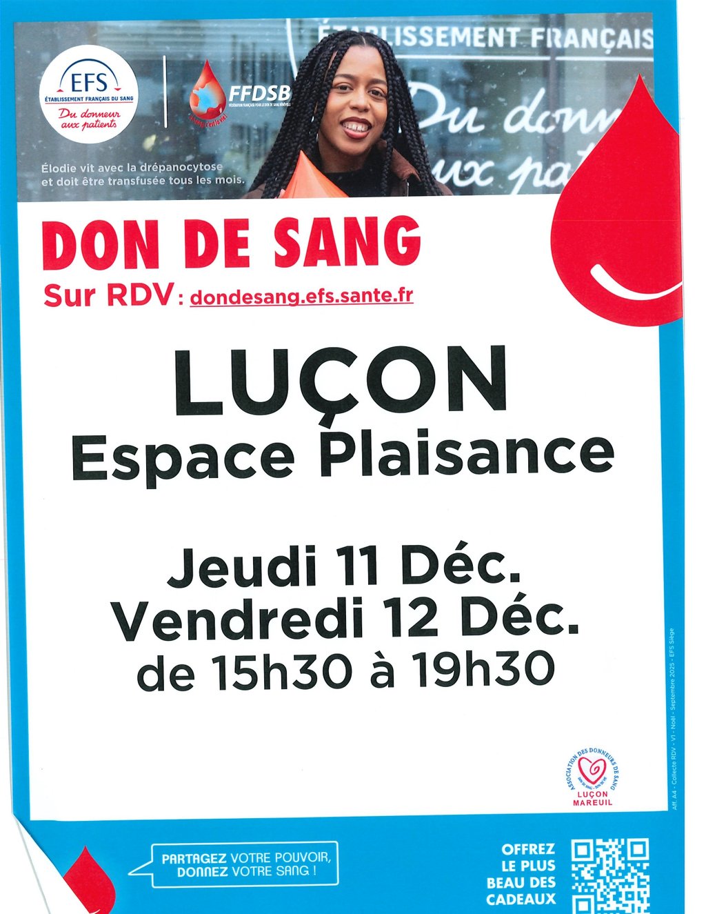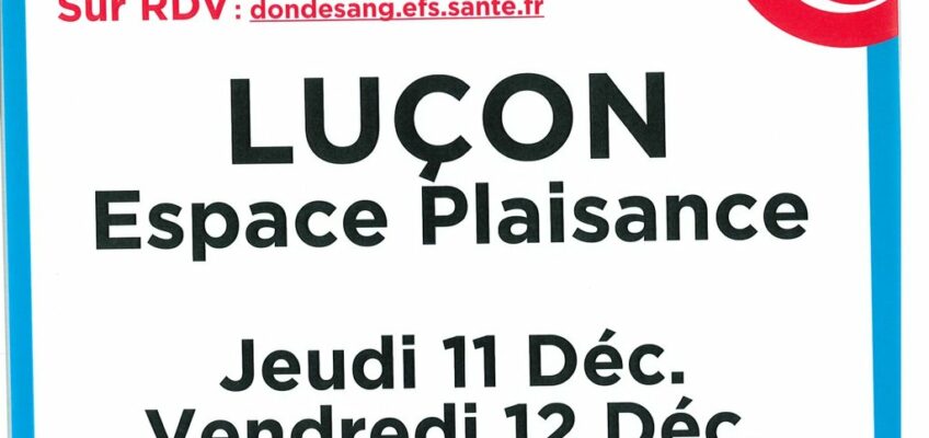 À l’espace Plaisance de Luçon le jeudi 11 décembre 2025 de 15:30 à 19h30.